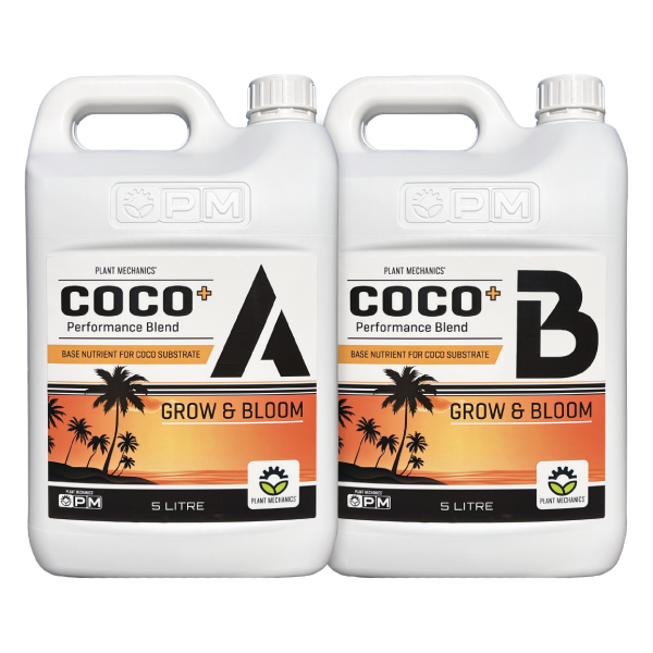 Plant Mechanics COCO+ base nutrient product shot in 5L bottles